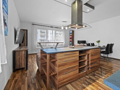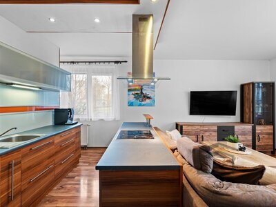 samostatným moderním ostrůvkem nabízí dostatek místa pro sedací soupravu