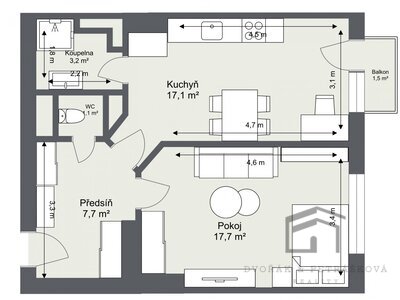 Tento byt s podlahovou plochou 46,8m2 se nachází na 2. podlaží
